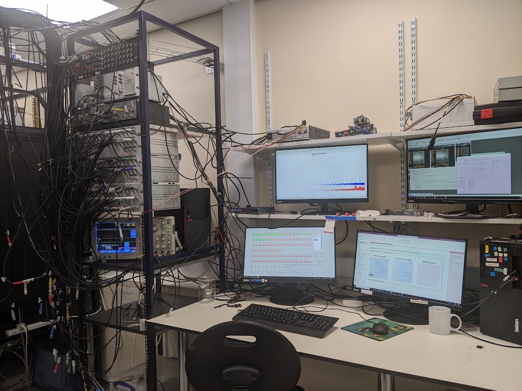 Control system. The experiment is controlled using digital and analog signals from an FPGA. We monitor the progress of the cooling on the scope, and then ultimately measure the properties of the ultracold atoms from images which are processed in real time. Other signals from the lab, such as table temperature, laser noise etc are monitored using a time series database.